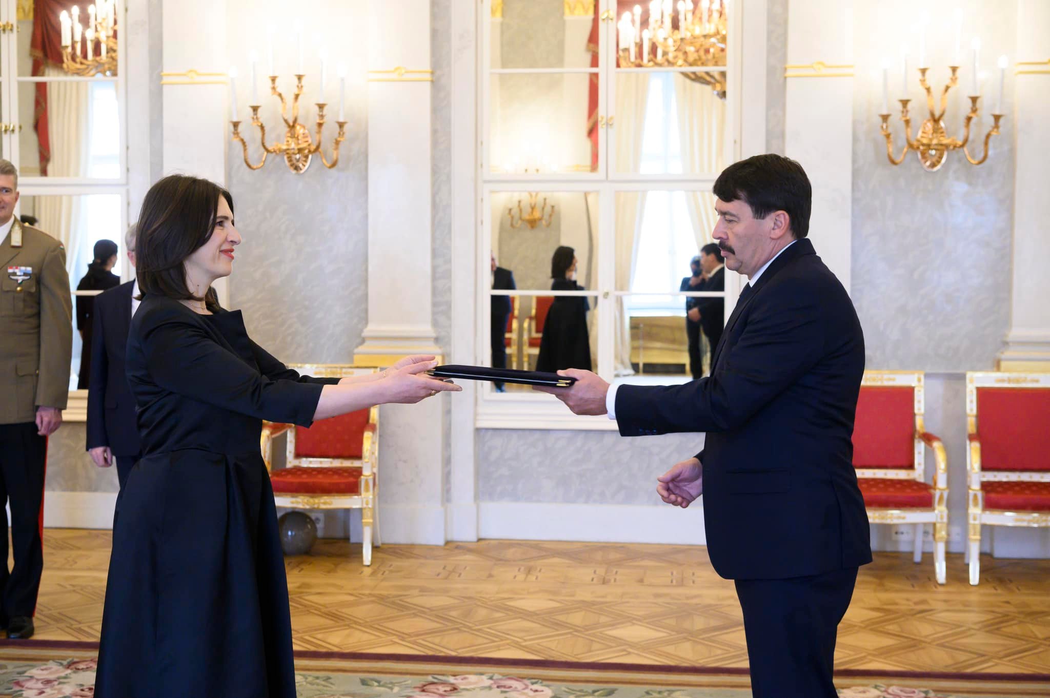 Ceremonia formale u zhvillua në ambientet e Pallatit Presidencial Sandor në Budapest. Gjatë ceremonisë, ambasadorja Budima ia përcolli Presidentit Ader mesazhet mirënjohëse dhe falënderimin e Presidentes Osmani-Sadriu për mbështetjen dhe përkrahjen e vazhdueshme të Hungarisë dhënë Kosovës dhe populli të saj.
