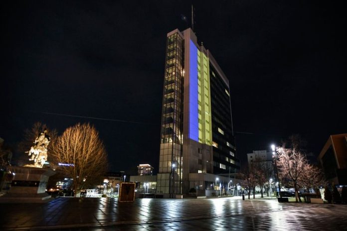 Kosova permes ndriqimit te objektit me flamurin e Ukrainës e ka dëshmuar edhe njëherë sonte mbështetjen e saj ndaj Ukrainës.